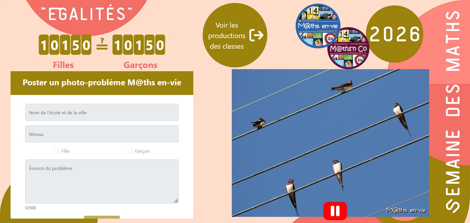 Ce jeudi 19 mars 2026, dans le cadre de la semaine des mathématiques, les élèves ont rédigé des photo-problèmes qu’ils ont déposés sur une plateforme, avec un objectif : égaliser le nombre de problèmes postés par les filles et le nombre de problèmes postés par les garçons. Mission brillamment réussie !