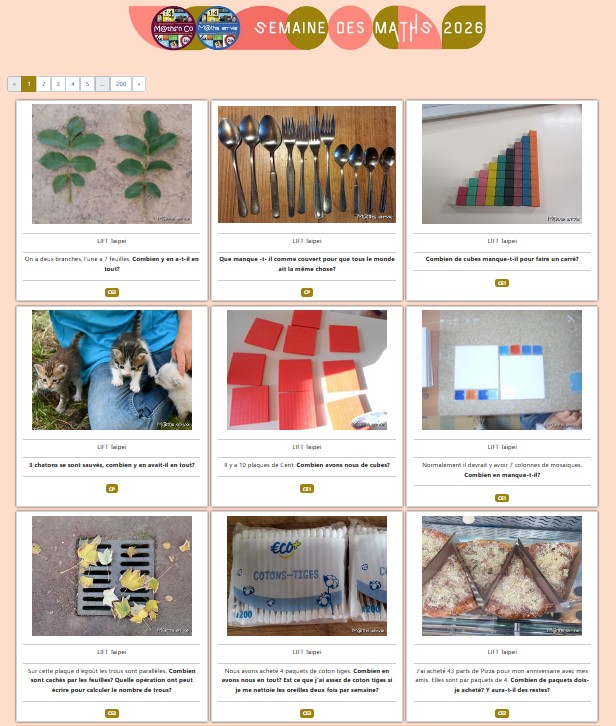 20 300 problèmes ont donc été rédigés tout au long de la journée par les classes. Ils ont été collectés dans une banque spécifique permettant aux élèves de découvrir les productions des autres classes, sur les mêmes photos qu’eux ! N’hésitez pas à les découvrir et à les exploiter à l’issue de cette semaine. Ils resteront en ligne sur notre site.