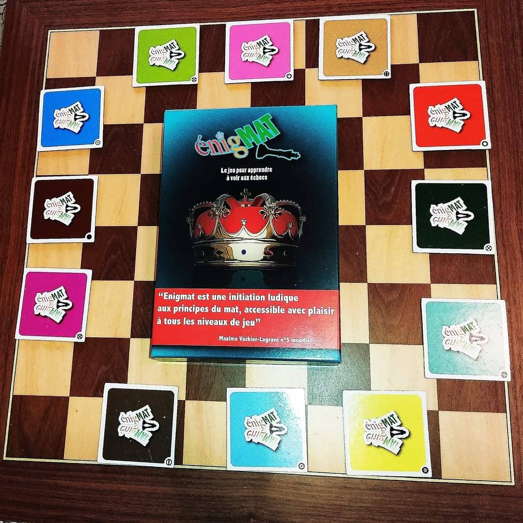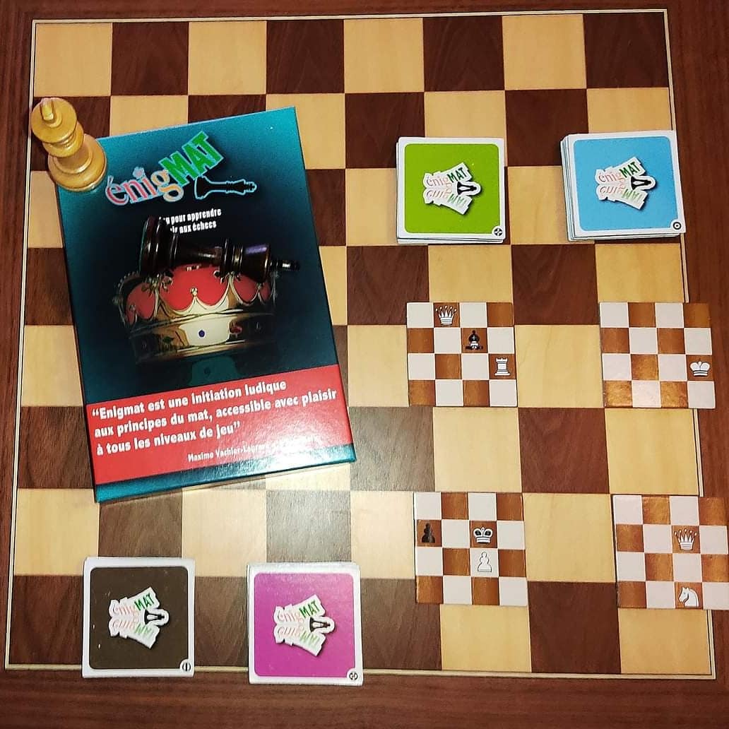 Le jeu se compose de 24 échiquiers partagés en 4. Un échiquier complet est repéré par 4 morceaux de couleur et symbole identiques. Énigmat est destiné à des joueurs de tous niveaux. Le principe général est simple, il s’agit d’assembler les 4 morceaux d’un échiquier de façon à reconstituer une position de mat.