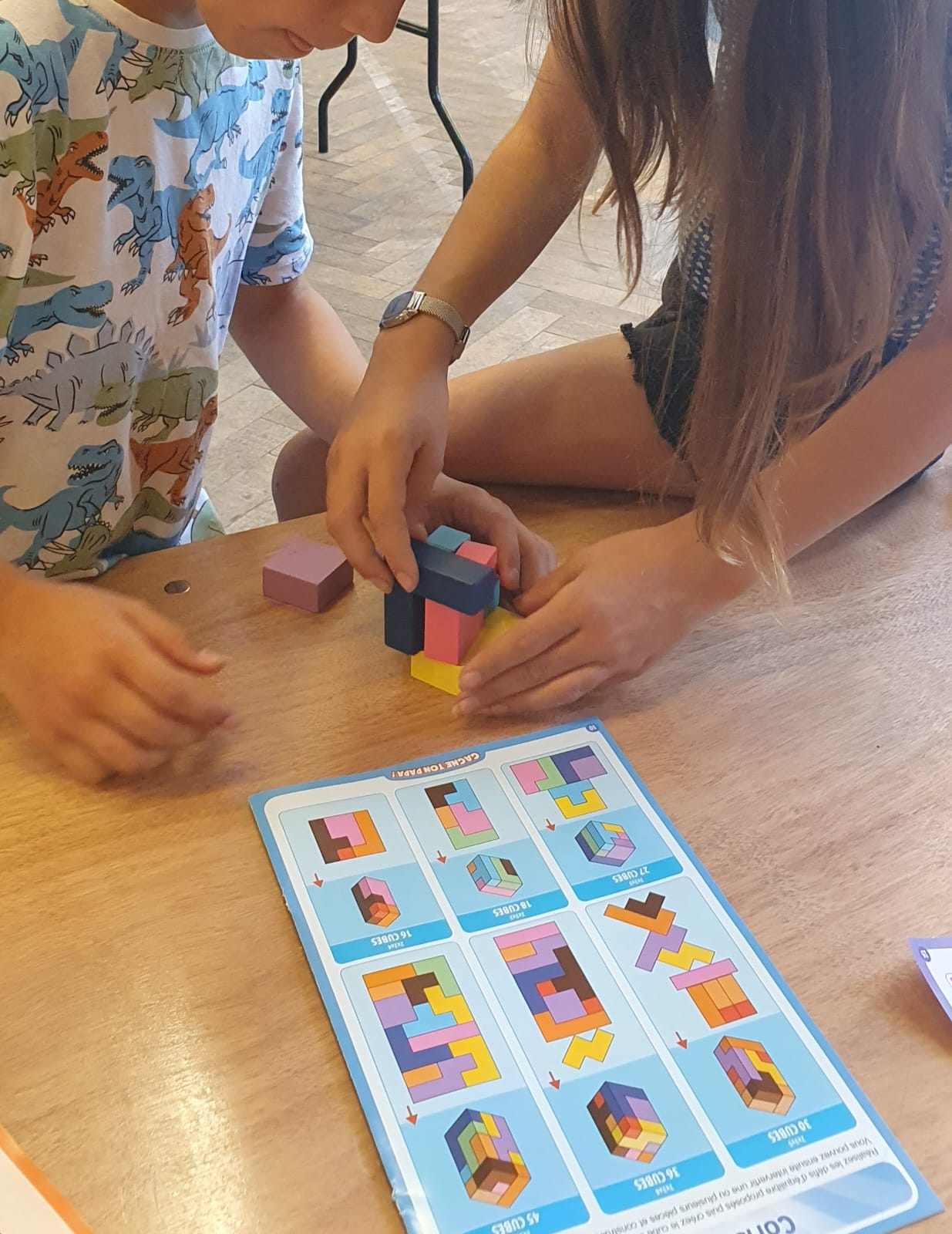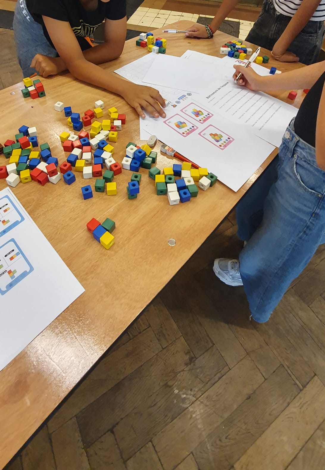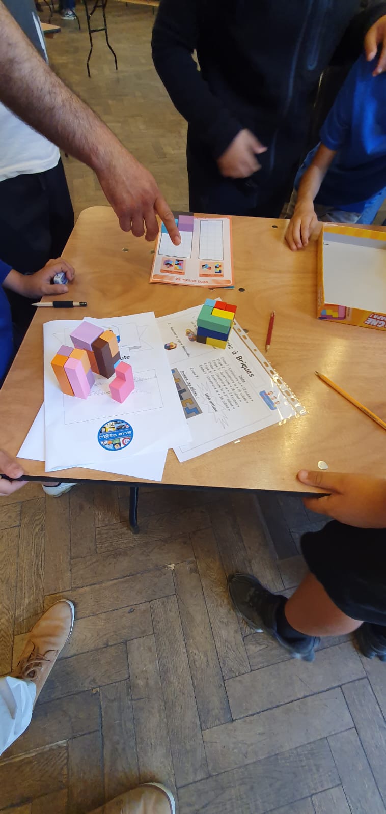 – Atelier 9 : « Bâtisseurs de l’espace » : énigmes sur des images en 3 dimensions, résolution par manipulation de cubes de couleur