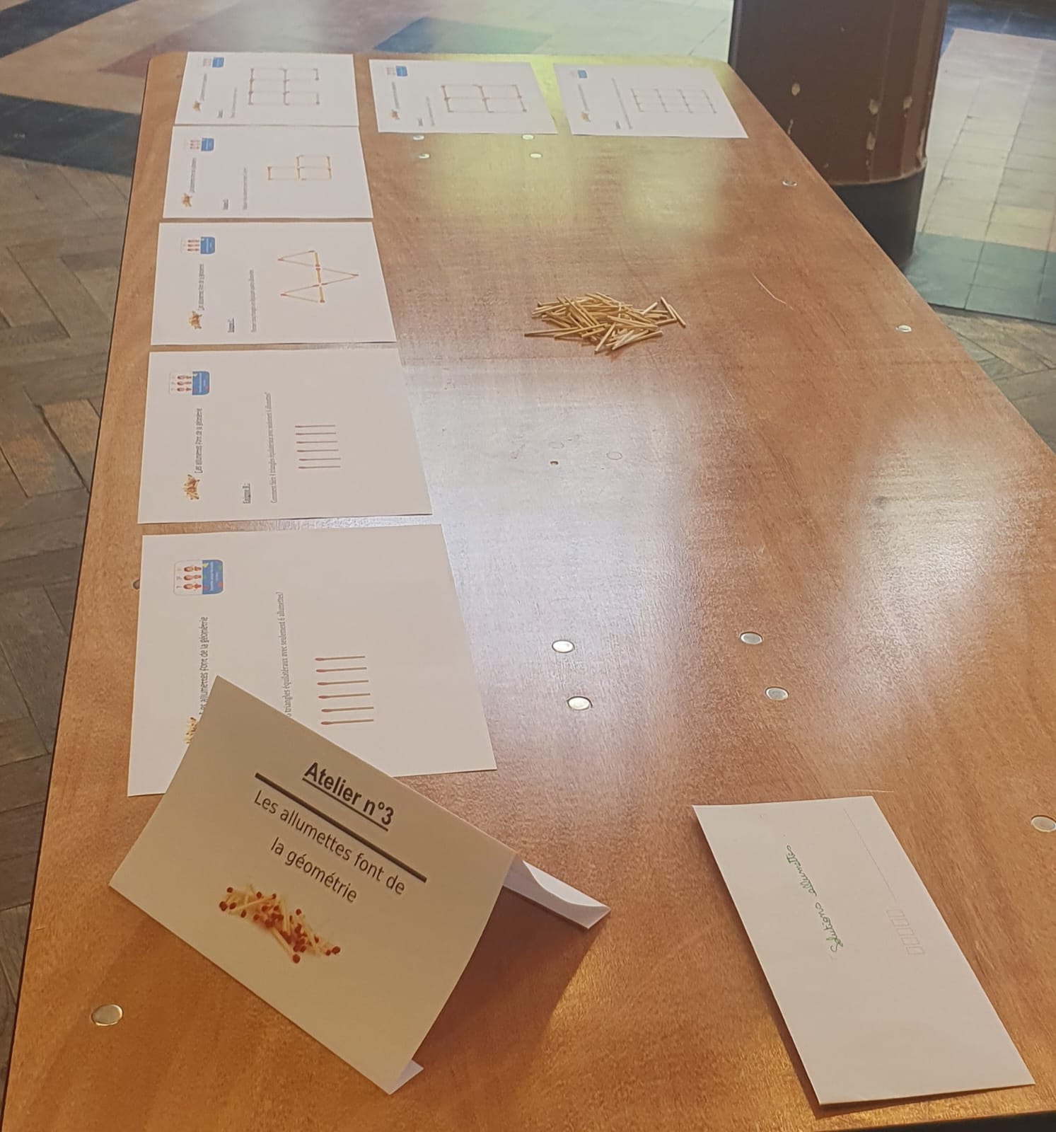 – Atelier 3 : « Les allumettes font de la géométrie » : énigmes géométriques à partir de manipulation d’allumettes.