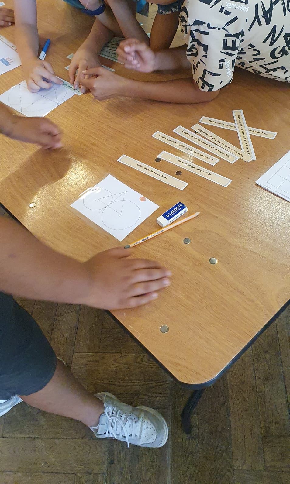 Nous nous sommes inscrits dans la continuité des rencontres mathématiques initiées par le Labo-maths du collège Ampère, les deux années précédentes. Nous avons désormais trois mallettes avec des thématiques différentes (problème pour chercher – fractions – géométrie).