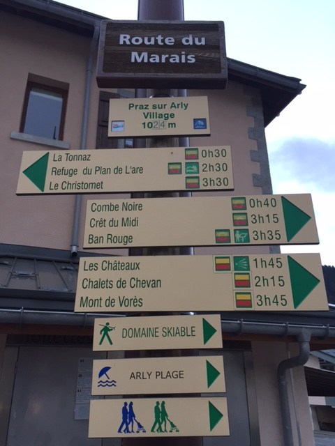 1 – Combien de temps met-on pour faire l’aller-retour entre Praz sur Arly et le Crêt du Midi ? 2 – Tom part de la Route du Marais. Ensuite il va à Ban Rouge puis à la Tonnaz. Combien de temps va-t-il mettre ? |