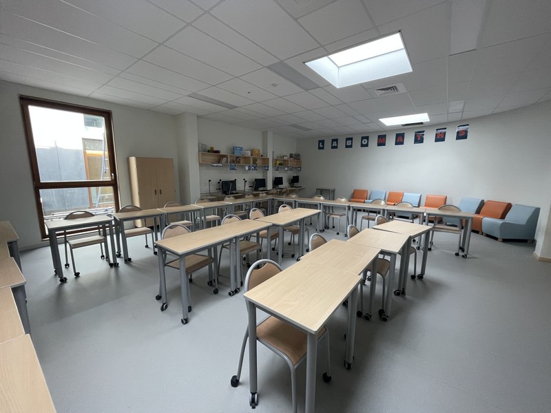 Au sein du collège de Varens à Passy, un lieu spécifique a été créé héberger le LaboMaths. Il comprend un espace documentaire, des rangements pour les matériels et jeux, des tables, chaises mobiles, canapés, tables basses pour adapter le lieu aux différents usages (formation, cours, rencontre entre élèves, jeux mathématiques, réunions…) ainsi qu’un espace numérique.