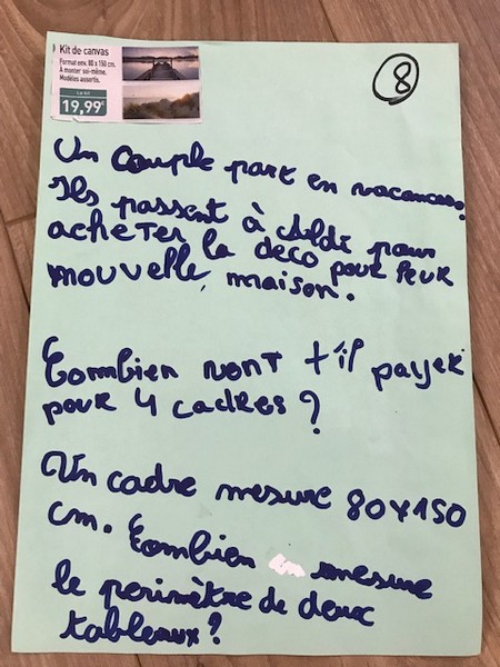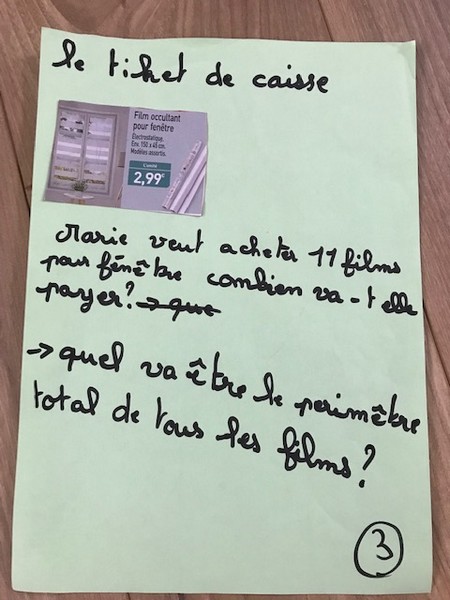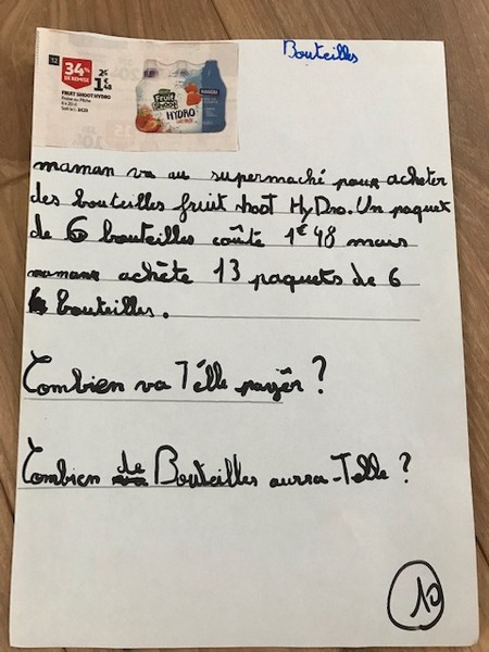 Ce projet d’écriture d’énoncés mathématiques a été réalisé avec ses élèves suite à une animation pédagogique sur la résolution de problèmes. Ci-dessous, leurs productions :