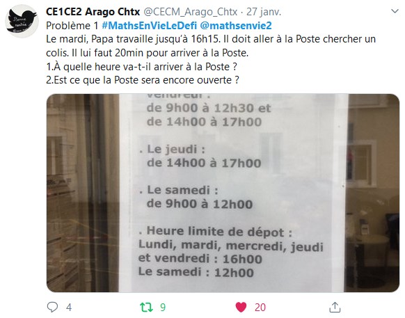 - Nous avons recherché les problèmes sur Twitter au regard des consignes données : indication du nom du compte du cycle concerné et indication de la balise #mathsenvieledefi. Toute faute d’orthographe dans ces deux termes a donc écarté votre problème, nous en sommes désolés !