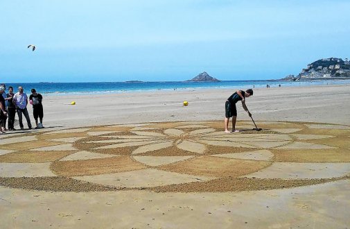 Éric Kermorant, professeur de mathématiques et formateur à l’Éspé de Bretagne, a eu l’idée de faire construire à ses élèves, en grand, sur une plage, de jolies figures géométriques. Mais pour en arriver là, il a fallu s’entraîner sur du papier et bien comprendre les figures et les procédés de construction.