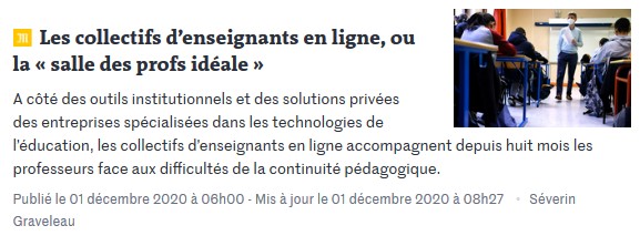 A côté des outils institutionnels et des solutions privées des entreprises spécialisées dans les technologies de l’éducation, les collectifs d’enseignants en ligne accompagnent depuis huit mois les professeurs face aux difficultés de la continuité pédagogique.