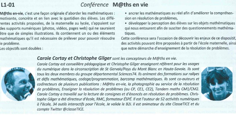Trois créneaux (une conférence et deux ateliers) nous sont alloués pour vous présenter M@hs en-vie, ses enjeux, les activités et notre démarche :