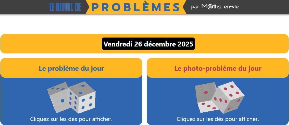 Depuis la plateforme appenvie.fr, sélectionner « Le rituel de problèmes » et cliquer sur les dés correspondant à votre choix :