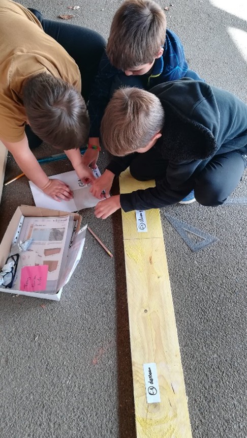 8/ Traçage sur les planches en utilisant les outils géométriques (et découpe par l’agent de la commune)
