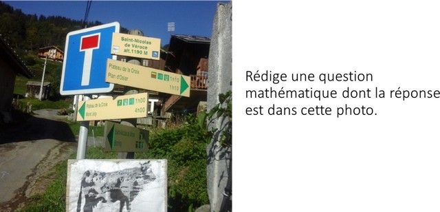 Par groupes de 4 à 5 élèves, nous sommes partis dans la ville, avec une tablette par groupe, à la recherche d’objets contenant un ou des éléments mathématiques pouvant servir de supports à la rédaction de problèmes.